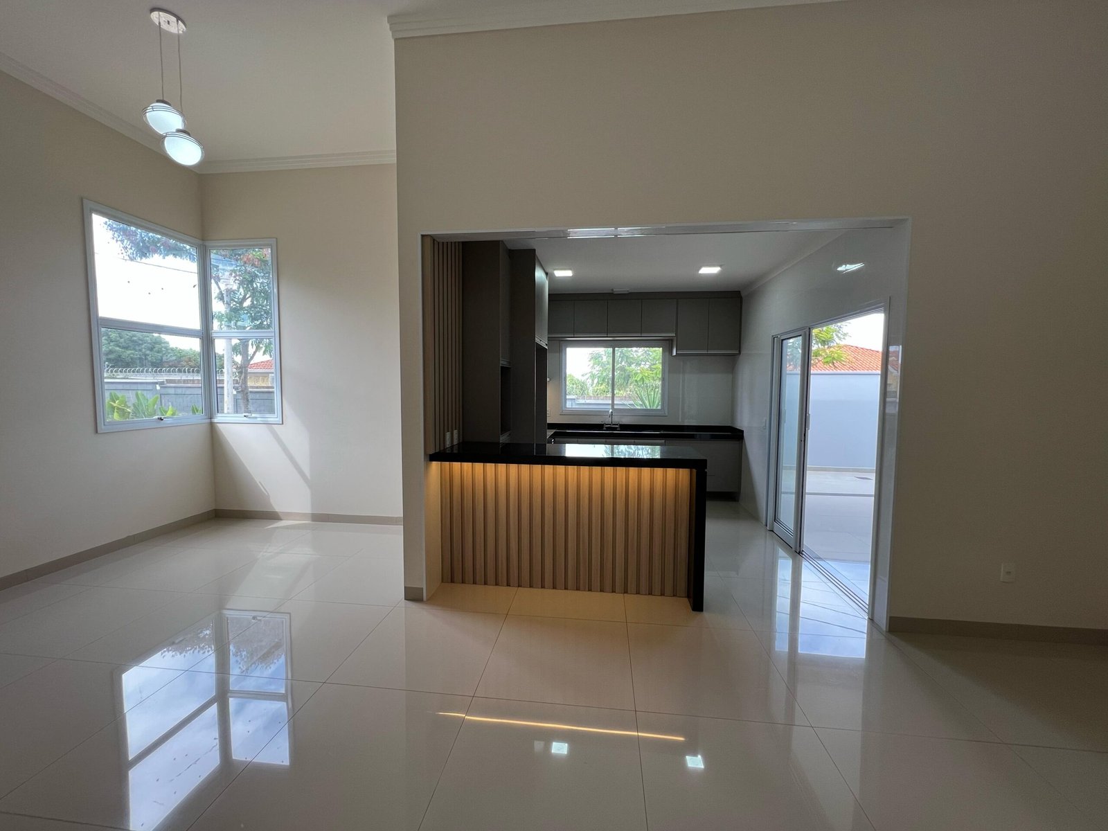 1 sala de pé direito alto com 2 ambientes